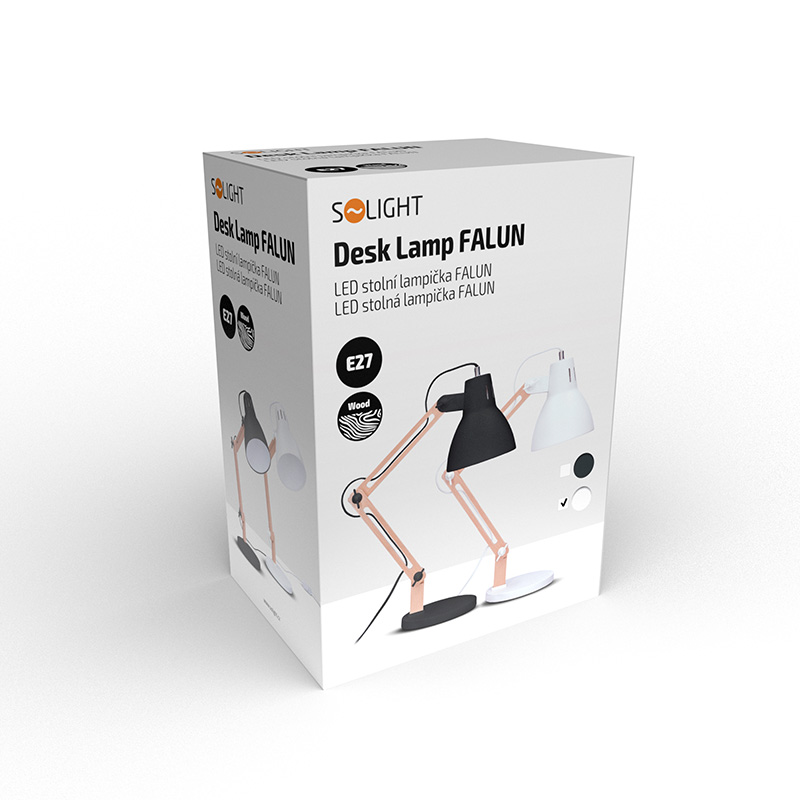 Käed on täielikult reguleeritavad – kogupikkus 10 + 25 + 25 cm – ja võimaldavad valguse täpset suunda. Metallist aluse läbimõõt on 17 cm, lambivarju suurus on 15,5 x 16,5 cm. Tänu 150 cm pikkusele toitekaablile lülitiga on lampi lihtne käsitseda. Ideaalne dekoratiiv- ja töövalgustina. Värvus: naturaalne puit + mattvalge. Pinge: 230V.