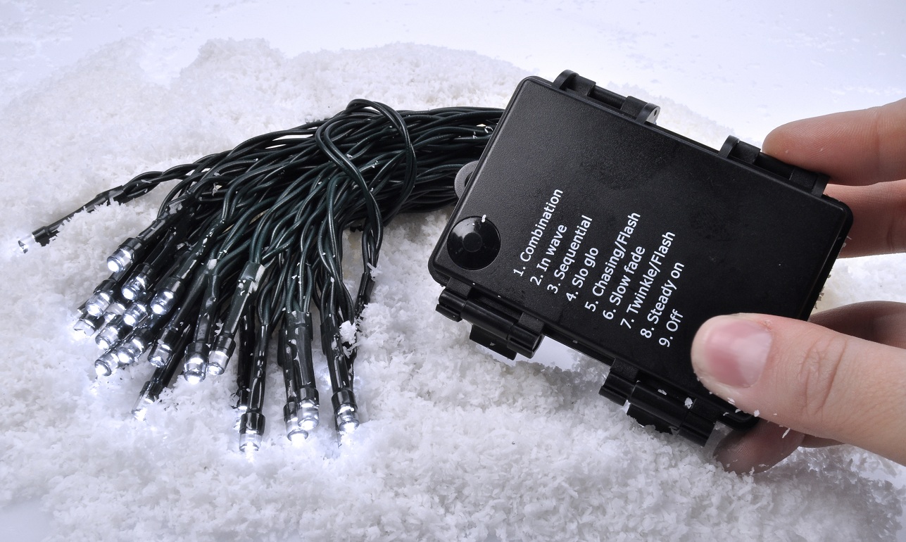 LED-kett – 50 LED-i, soe valge, 8 režiimi, taimer