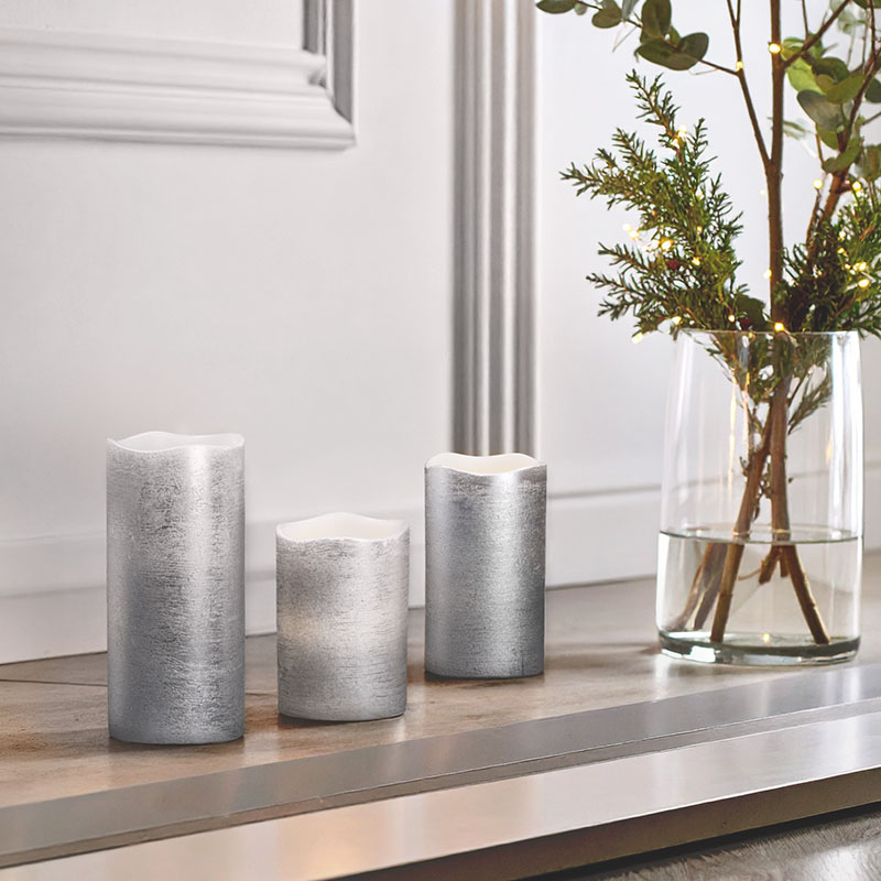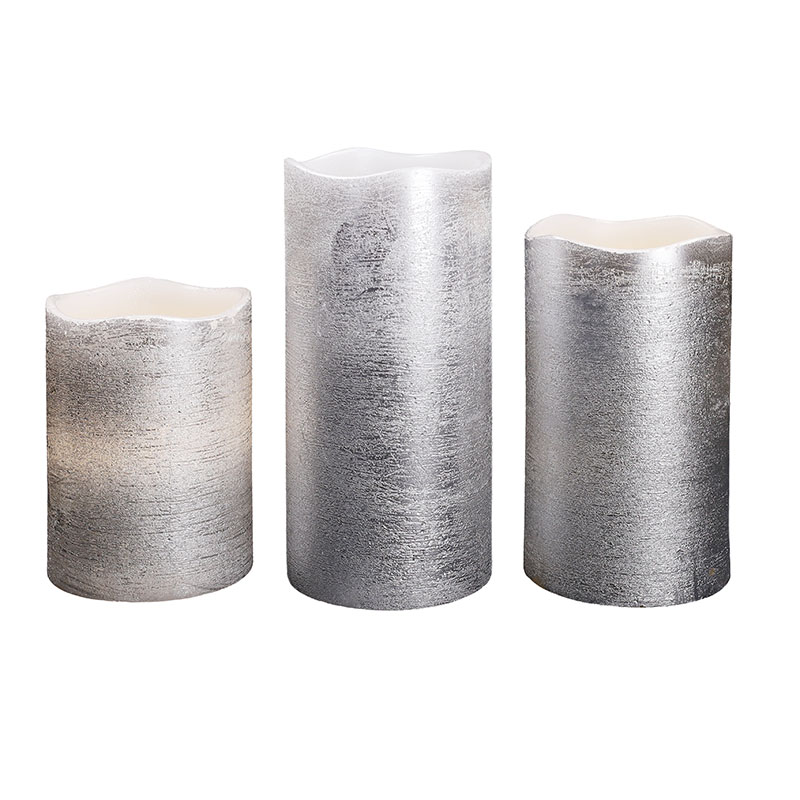 - Hõbedase värvi loomulikult virvendava leegiga LED-vahaküünalde komplekt