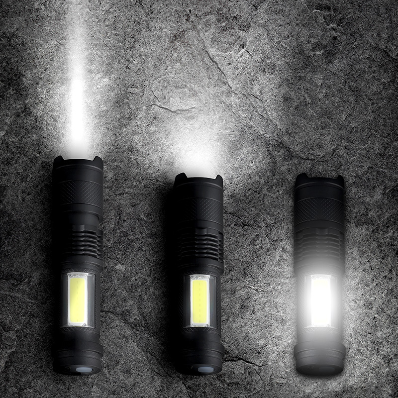 Kompaktne laetav LED-taskulamp sobib ideaalselt igapäevaseks kasutamiseks kodus, liikvel olles ja looduses. Sellel on kaks valgusallikat – eesmine (100 lm) ja küljel (70 lm), mille vahel saab hõlpsalt vahetada. Valida saab kolme režiimi vahel: 100% eesmine, vilkuv eesmine ja 100% küljelt valgus. Taskulamp on varustatud praktilise suumiga valguskoonuse reguleerimiseks ja sellel on IP44 kaitseklass välitingimustes kasutamiseks. Seda toidab 400mAh liitiumioonaku, mille tööiga on 1-2 tundi, ja seda saab laadida USB-C pistiku kaudu (laadimisaeg 2 tundi). Mõõtmed 100 x 26 mm ja must disain muudavad selle praktiliseks ja stiilseks tööriistaks. Pakendis 6 tk.