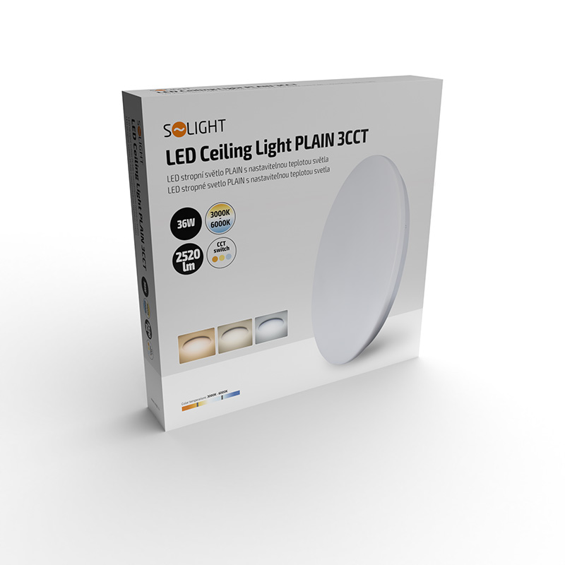 Solight LED laevalgusti Plain, 3CCT, 36W, 2520lm, 3000K, 4000K, 6000K, ümmargune, 45cm