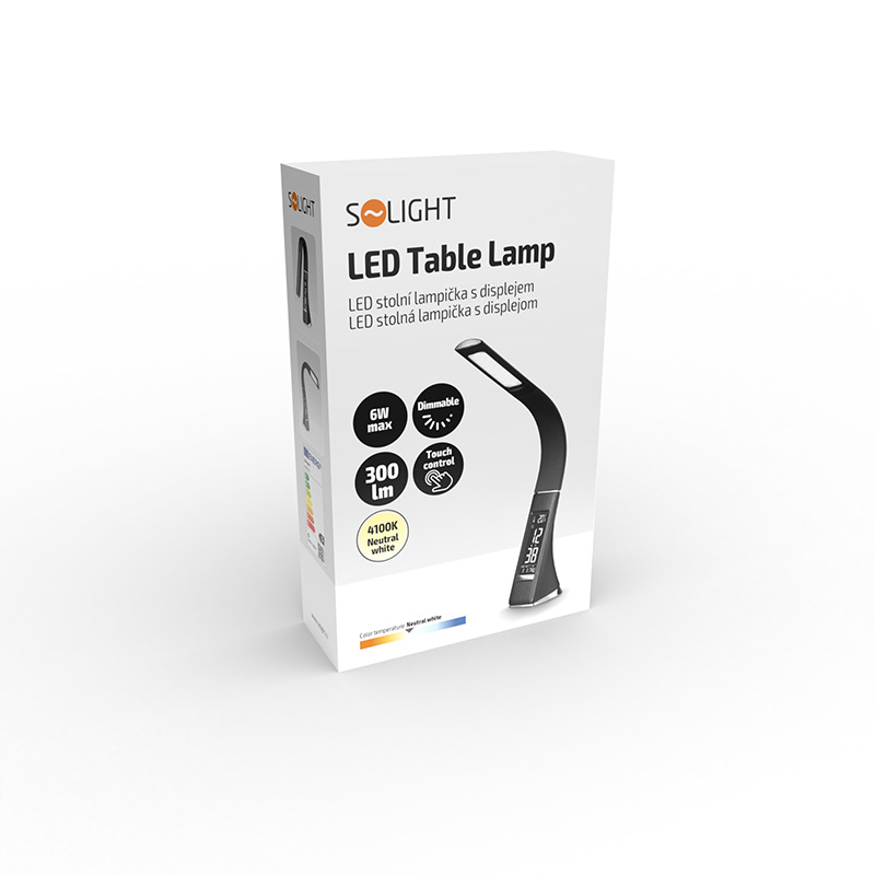 Solight LED laualamp ekraaniga, 6W, 4100K, nahk, must