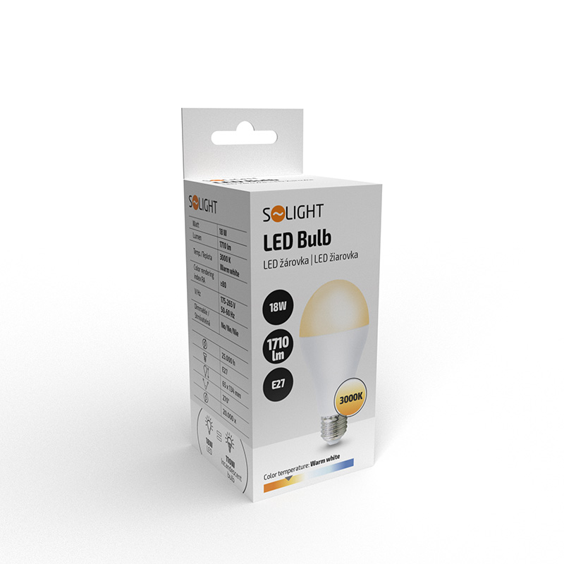 Solight LED-pirn, klassikalise kujuga, 18W, E27, 3000K, 270°, 1710lm