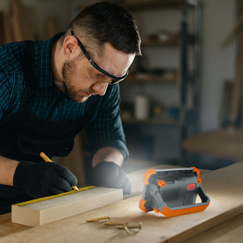 See praktiline kaasaskantav LED-prožektor on ideaalne kaaslane nii tööks kui ka vaba aja veetmiseks õues. See pakub kuni 1000 lm valgusvoogu 10W võimsusel ning kasutaja saab valida ühe kolmest valgustusrežiimist – 100%, 50%. Prožektor on varustatud COB LED-dioodiga, mille neutraalne valge valgusvärv (4000K) tagab loomuliku ja ühtlase valgustuse. See on varustatud kvaliteetse liitiumioonakuga (3,7 V / 4400 mAh), mille aku tööiga on kuni 4 tundi, ja varupatarei funktsiooniga mobiilseadmete laadimiseks (USB-väljund 5 V / 1 A).