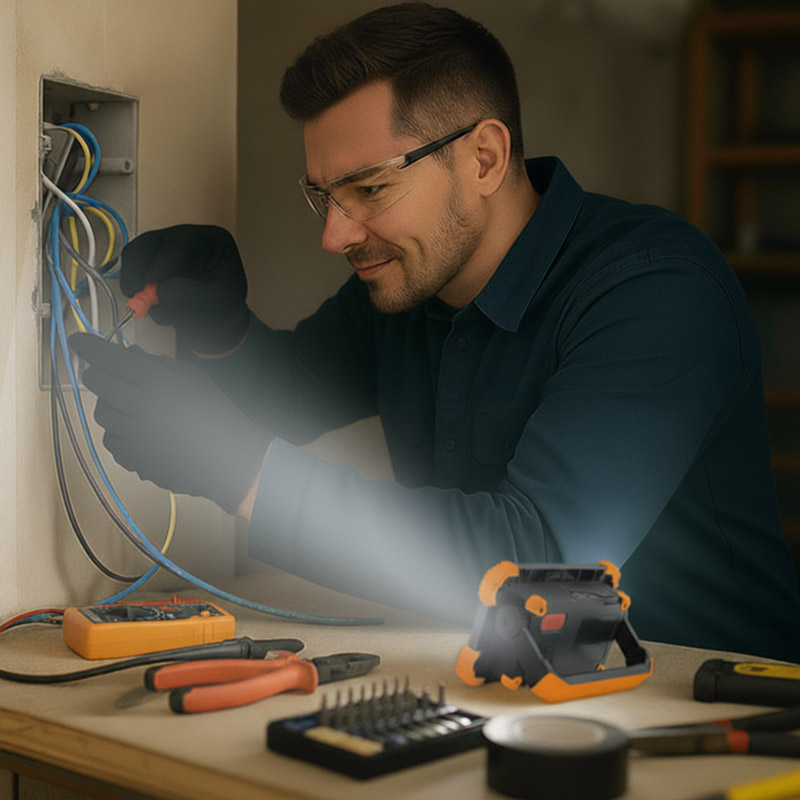Aku laadimine võtab aega umbes 4 tundi. Prožektoril on IP54 kaitseklass, seega on see kaitstud pritsmevee ja tolmu eest, mis muudab selle sobivaks kasutamiseks välitingimustes. 120° valguskoonus tagab ala piisava katvuse. Vastupidav ABS-ist ja PC-plastikust korpus koos kompaktsete mõõtmetega (14 × 10 × 4,5 cm) ja oranž-musta värvilahendusega muudab selle mudeli ideaalseks valikuks telkimiseks, remondiks ja hädaolukordadeks.