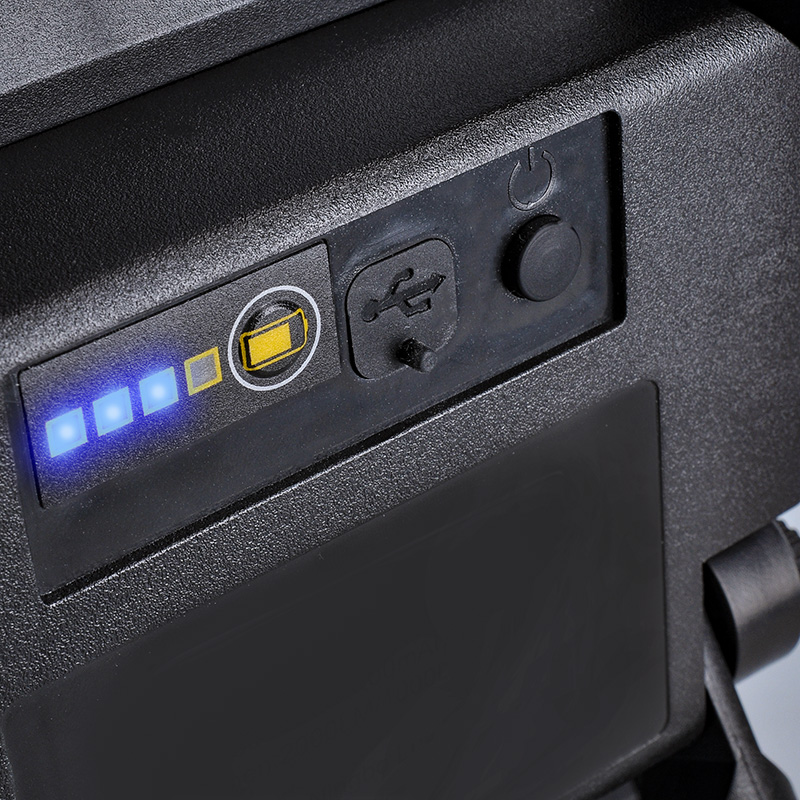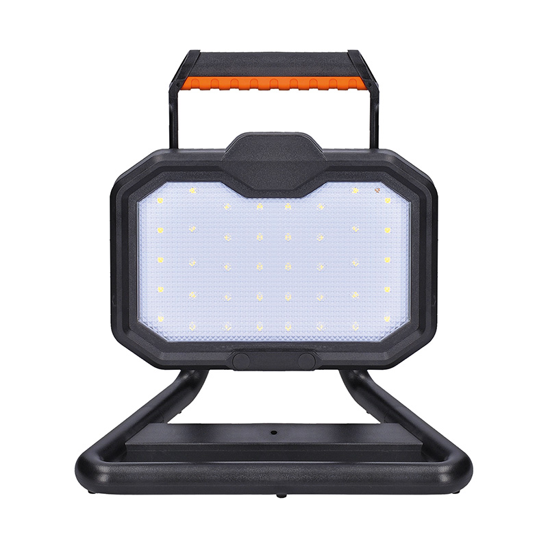 Prožektor on varustatud 40 SMD2835 LED-kiibiga, mis tagavad ühtlase valguse jaotumise 120° nurga all. Saate valida kolme valgustusrežiimi vahel – 100%, 50% ja 20%, nii et saate intensiivsust vastavalt vajadusele reguleerida. Võimas 4400 mAh mahutavusega liitiumioonaku võimaldab valgustust kuni 10 tundi (madalaima intensiivsusega), samas kui täielik laadimine võtab aega umbes 4 tundi.