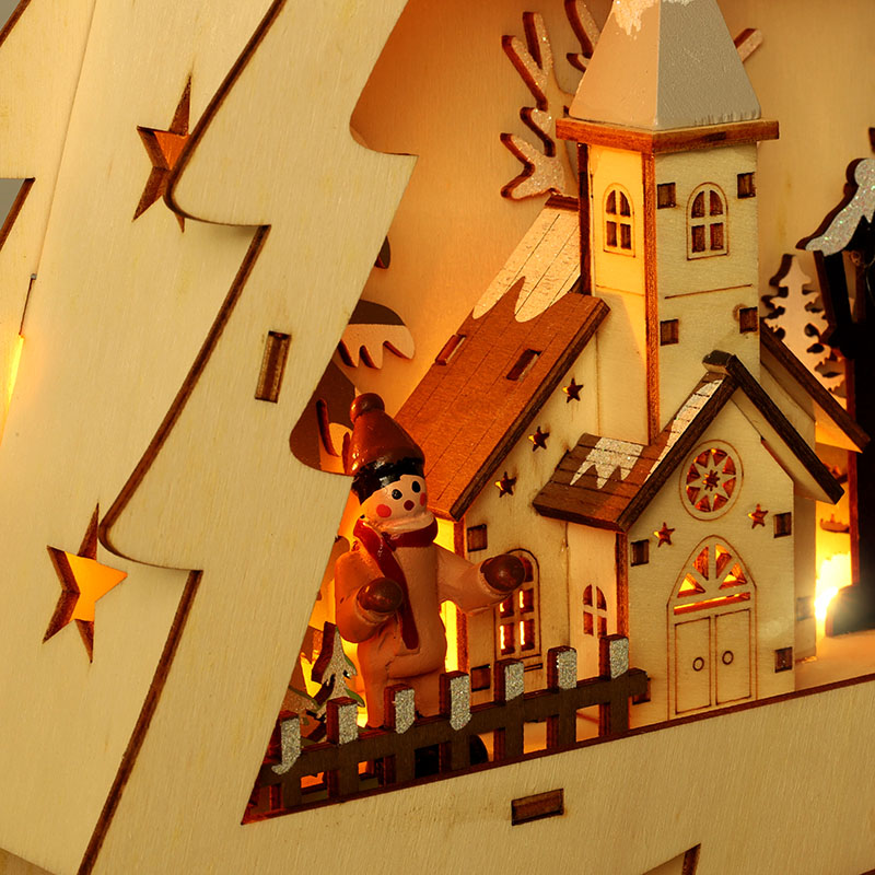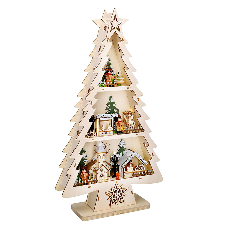- Puidust jõulupuu kaunistuste ja LED-valgustusega