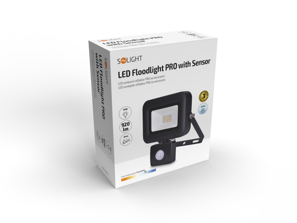 Solight LED-punktvalgusti PRO sensoriga, 10W, 920lm, 5000K, IP44