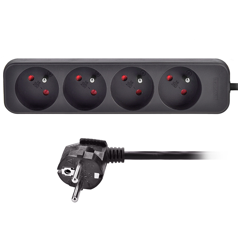 Praktiline must pikendusjuhe pikkusega 3 meetrit ja nelja pistikupesaga võimaldab teil tuua elektrienergiat kohtadesse, kus pole kindlat pistikupesa. Ideaalne kodu- ja kontorikasutuseks.